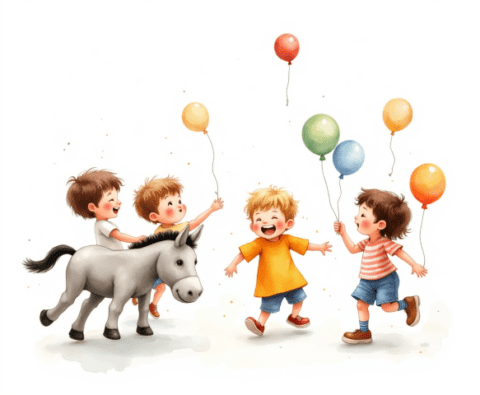 Free clipart illustration of birthday party with birthday cake (8)