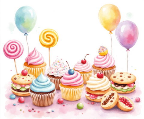 Free clipart illustration of birthday party baked treats (6)