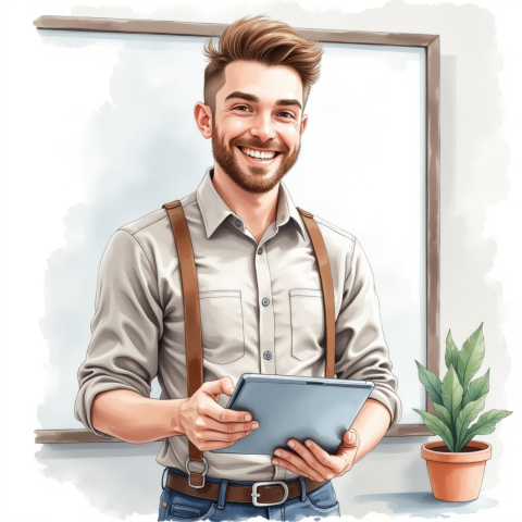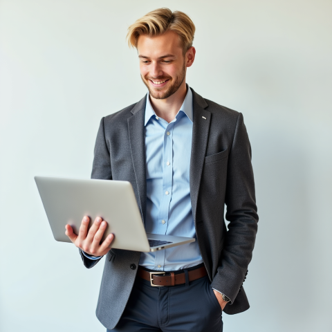 free clipart of business person facing camera smiling and using laptop (16)