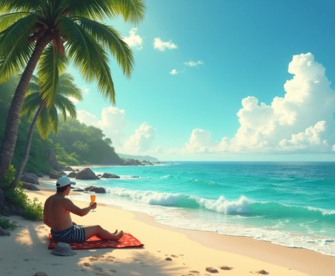 beach relaxation with drink