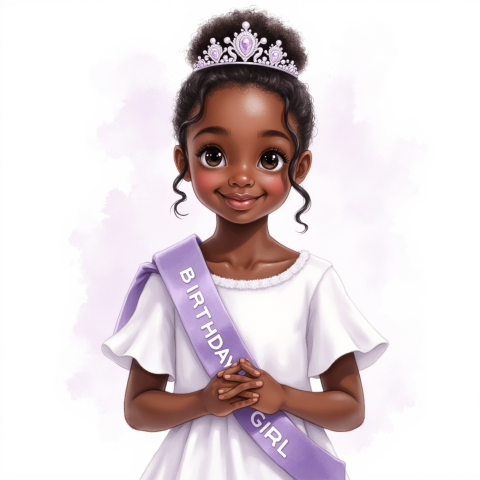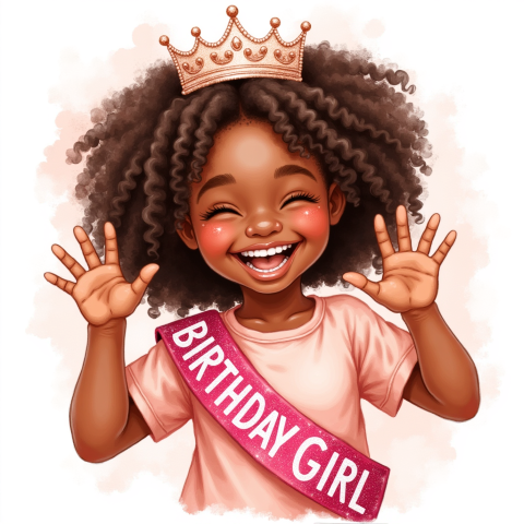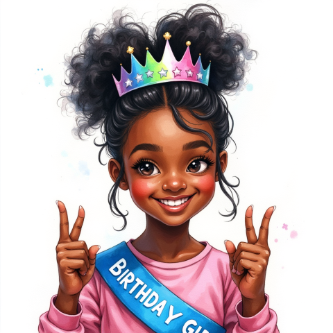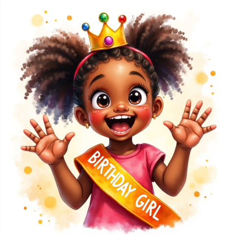 free clipart illustration of a black girl wearing birthday girl sash (1)