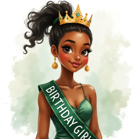 free clipart illustration of a black girl wearing birthday girl sash (8)