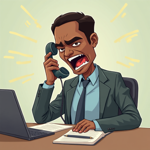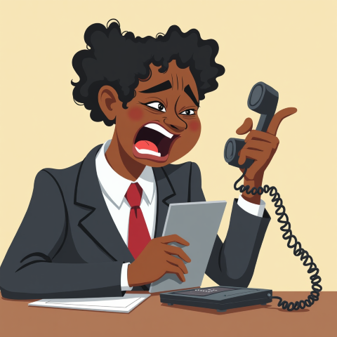 free clipart illustration of a black boss screaming into a phone (1)