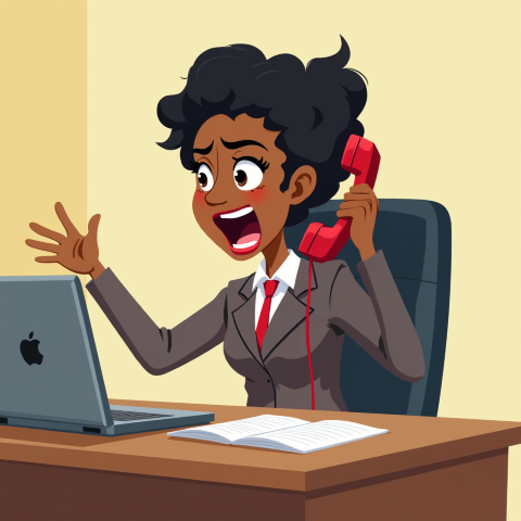 free clipart illustration of a black business woman screaming into a phone (1)