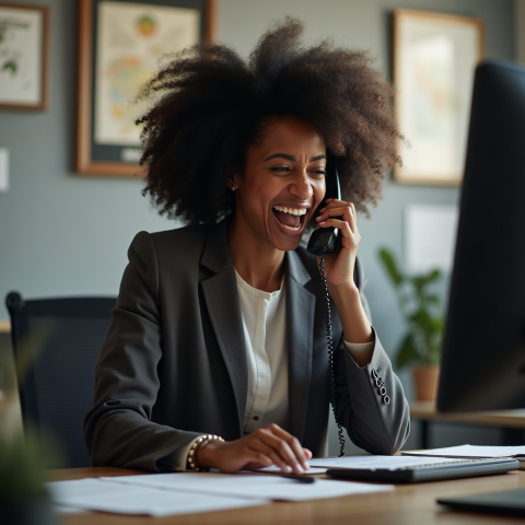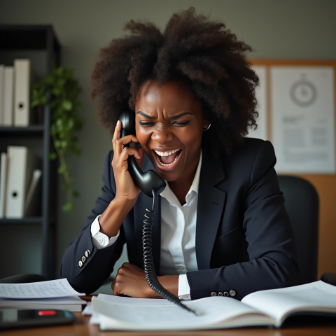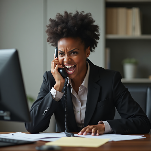 free clipart stock photo of a black female boss screaming into a phone (1)