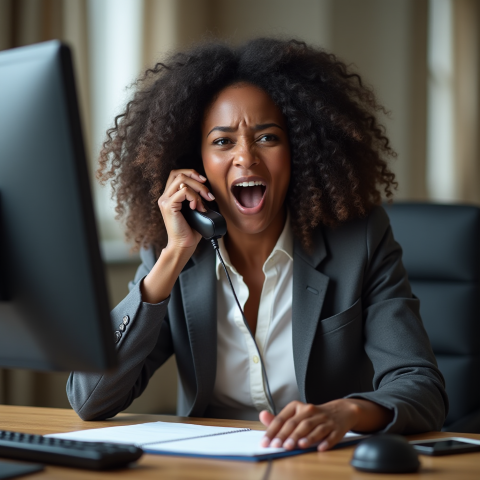 free clipart stock photo of a black female boss screaming into a phone (3)