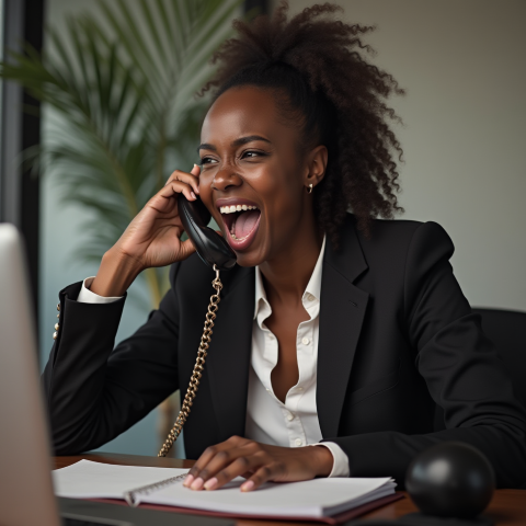 free clipart stock photo of a black female boss screaming into a phone (4)