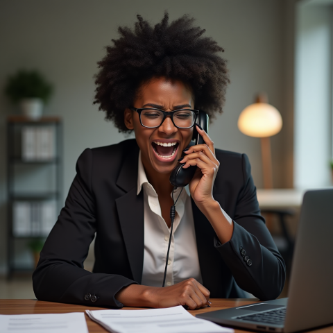 free clipart stock photo of a black business woman screaming into a phone (1)