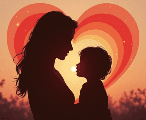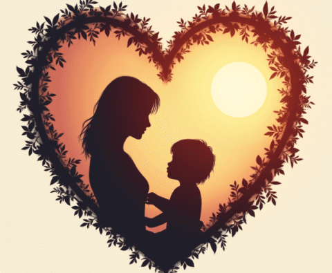 Free clipart illustration of mothers day concept in a heart shape silhouette (1)