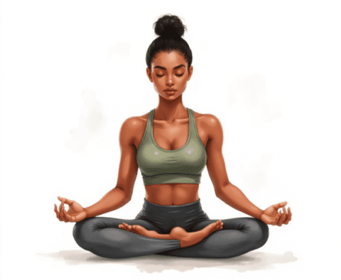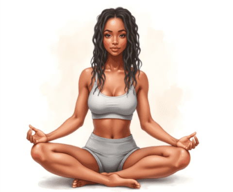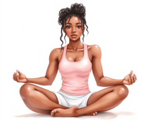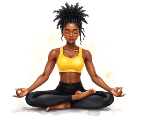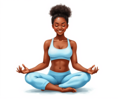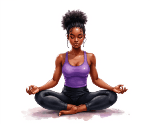 free clipart illustration of a healthy black female sitting in a yoga pose meditation (1)