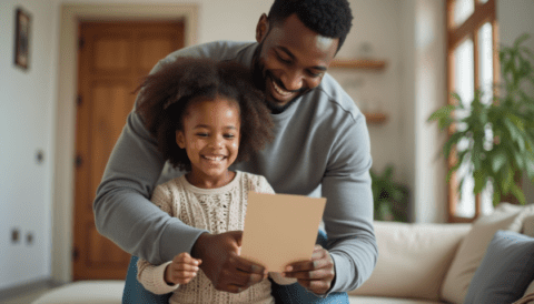 Free stock photo black father getting fathers day card from daughter (7)
