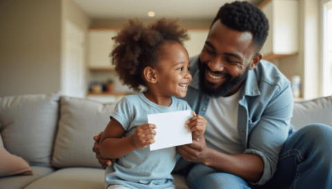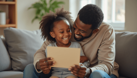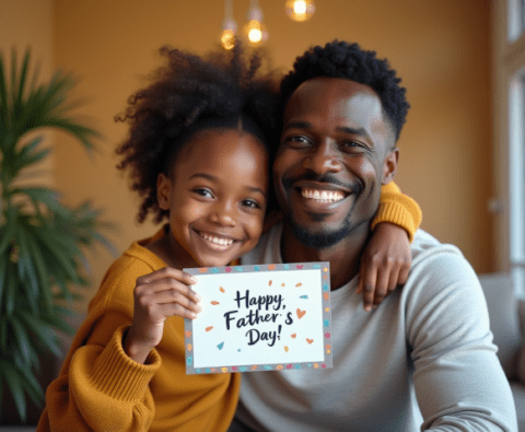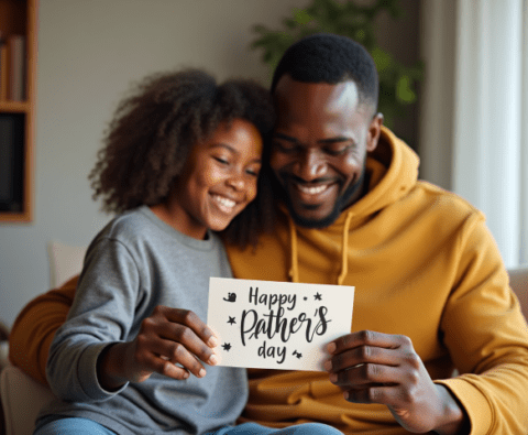 Free stock photo black father getting fathers day card from daughter (9)