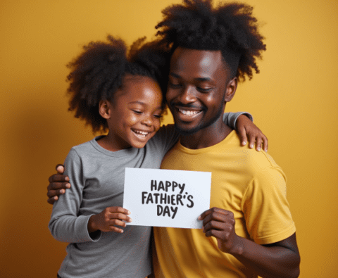 Free stock photo black father getting fathers day card from daughter (10)