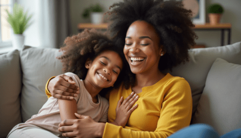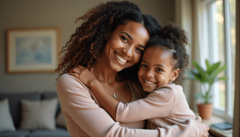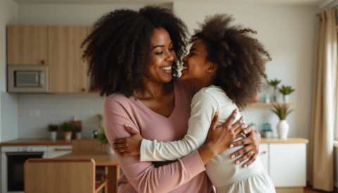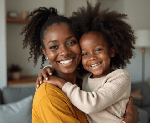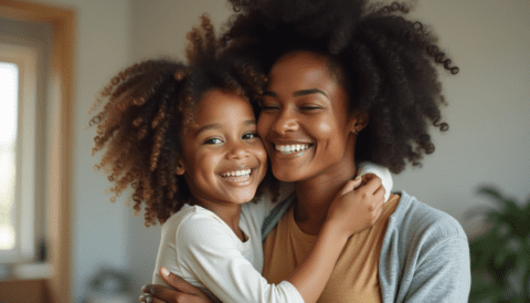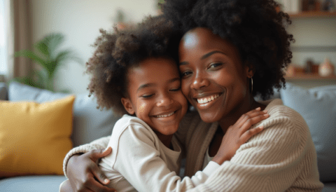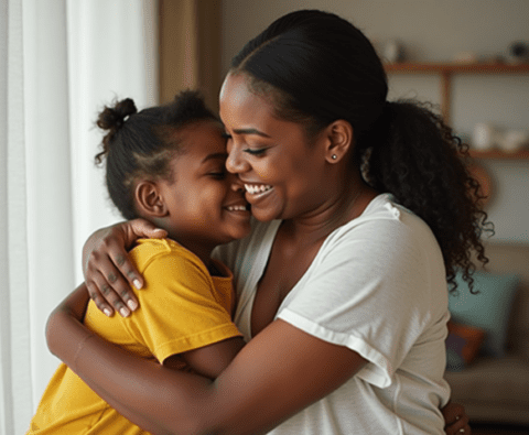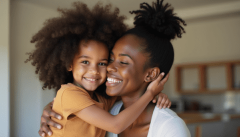 free stock photo of black mother hugging her child on mothers day (1)