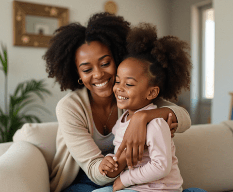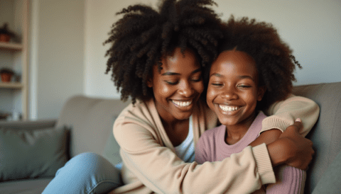 free stock photo of black mother embracing daughter (6)