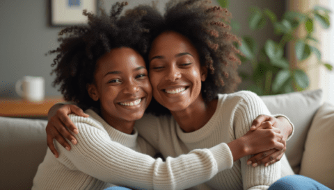 free stock photo of black mother embracing daughter (4)