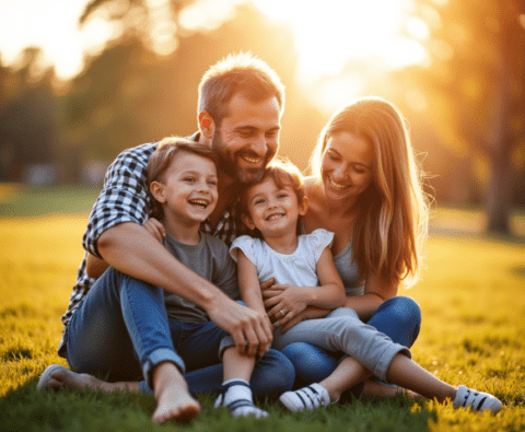 free stock photo of father sitting in park with children