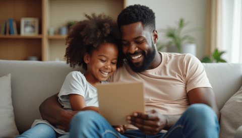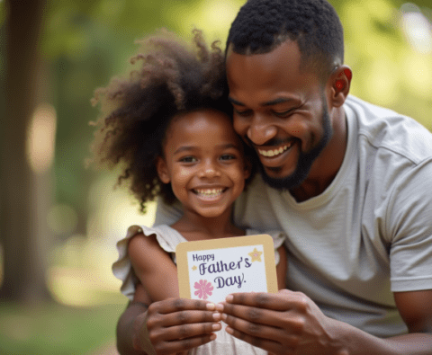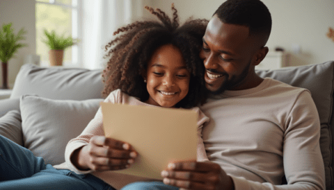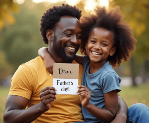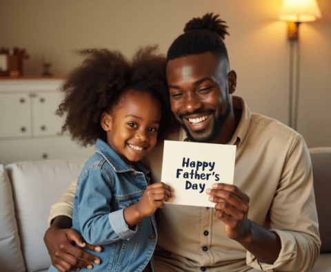 Free stock photo black father getting fathers day card from daughter (1)