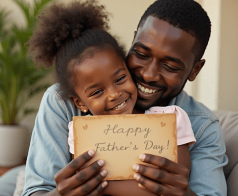 free stock photo of black father getting fathers day card from daughter (1)