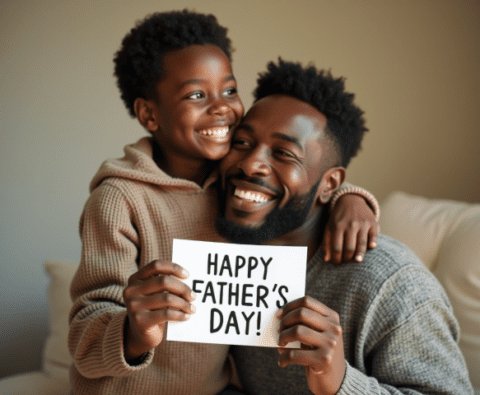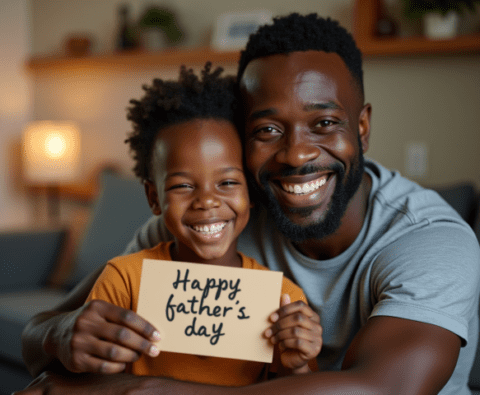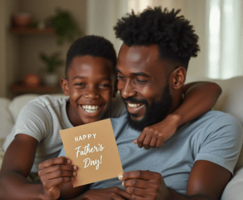 free stock image of black father getting happy fathers day card from son (1)