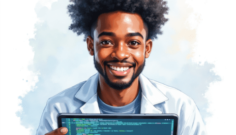 free clipart illustration of a black man working with computer (1)