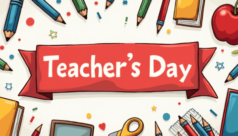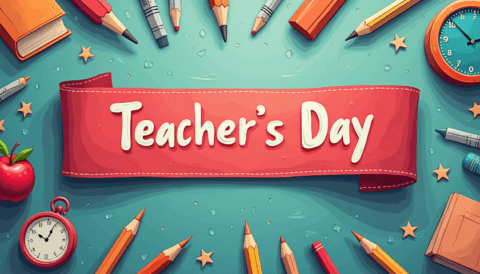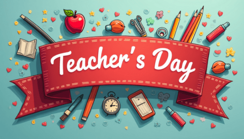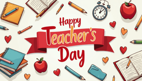 free clipart illustration of a happy teachers day text with red background template (3)
