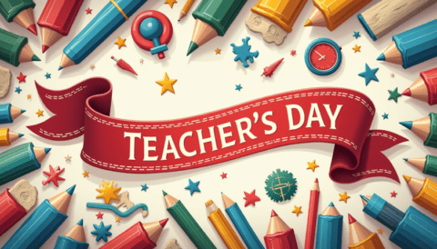 free clipart illustration of a happy teachers day red ribbon design template (1)