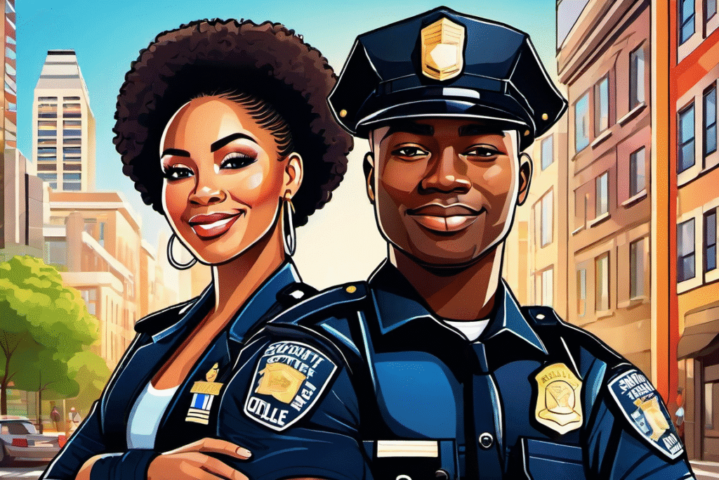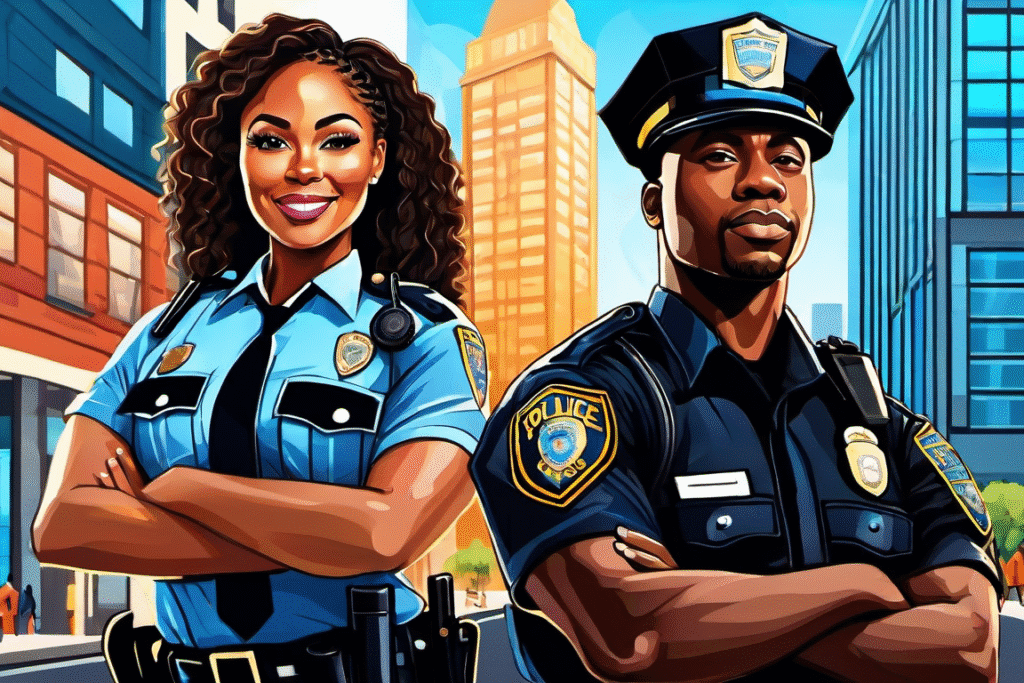 police officers smiling urban setting