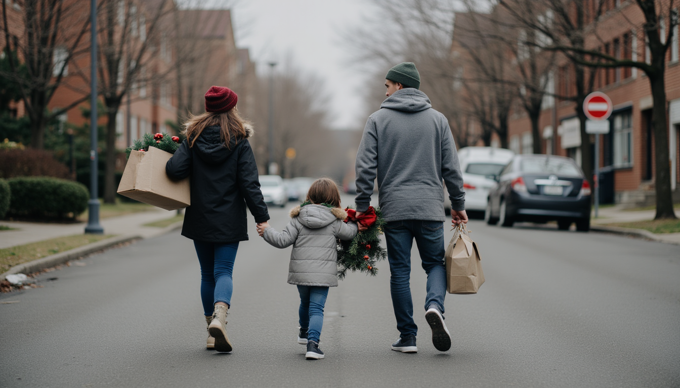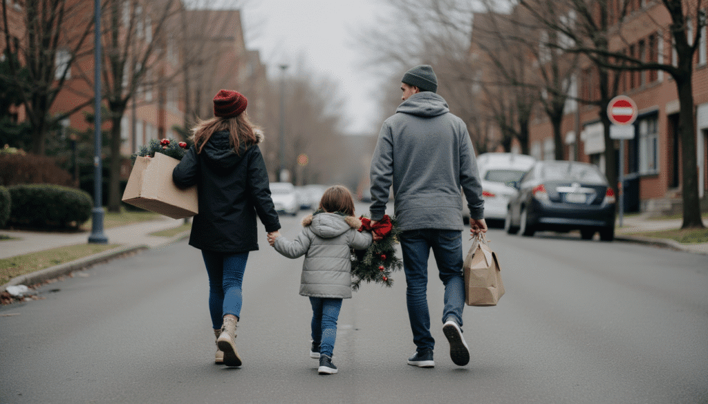family holiday shopping urban street