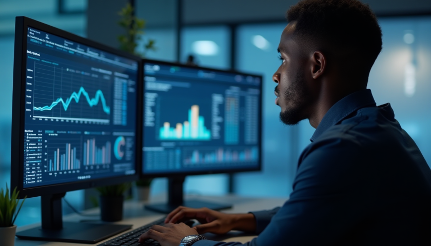 data analyst working at desk