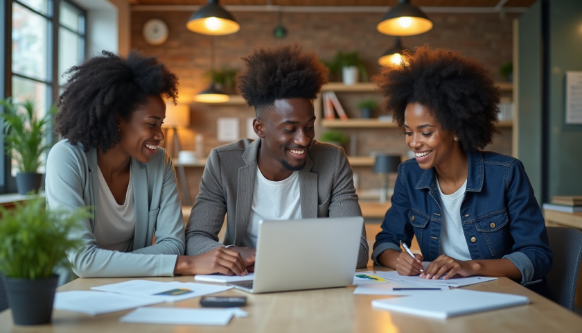 team collaboration working laptop office