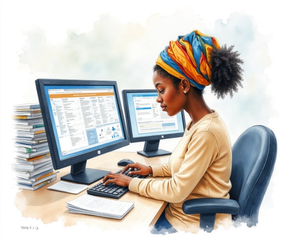 healthcare professional working on computer